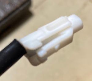 The bottom plastic clip (it’s like a tie-wrap on a plug) is best dealt with by prising it out of it’s hole in the plastic and leaving it on the cable (the picture shows it off the cable