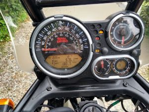 The only other modification is the relocation of the temperature sensor from behind the engine to the front of the bike so that it tells you the air temperature. It could be put back, but I can’t imagine why.