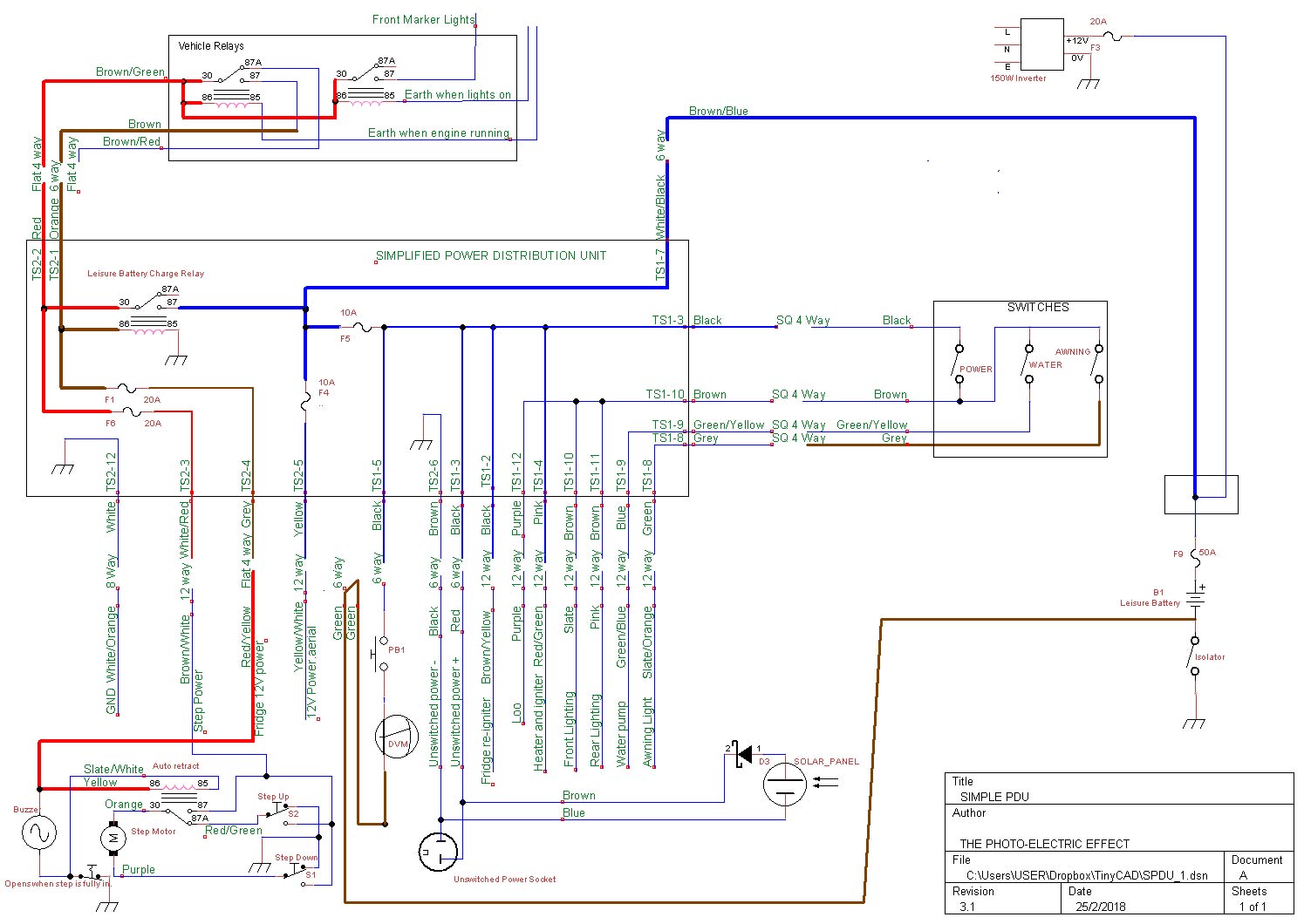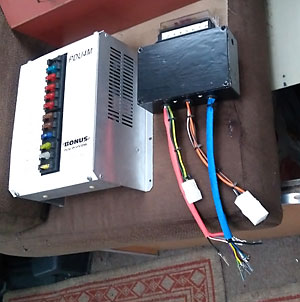 I needed to be able to unplug the existing PDU and plug in my replacement so the first challenge was to source connectors that would mate with the van wiring. A web search (looking for matching pictures) established that they were BCA harness connectors and were available on line from caravan accessory shop uk. Then it was a matter of using the schematic in the handbook and a meter to find the connectors I needed.