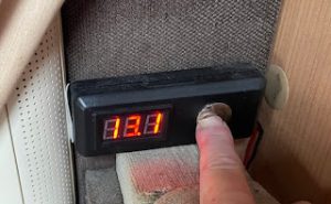 Update – After a weekend at a folk festival with overcast weather every day, the leisure battery showed around 13.5V every night and around 12.7V every morning. This was charging two phones and ipad, a laptop, operating the lights (including the awning light for around 3 – 4 hours).