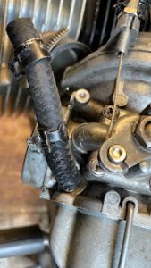 I had to unhook the carbs from the engine in order to remove and replace the fuel hose. and there is the hose weeping as it joins the carb. The other side was cracked, but not leaking yet. All of the hose was perished!